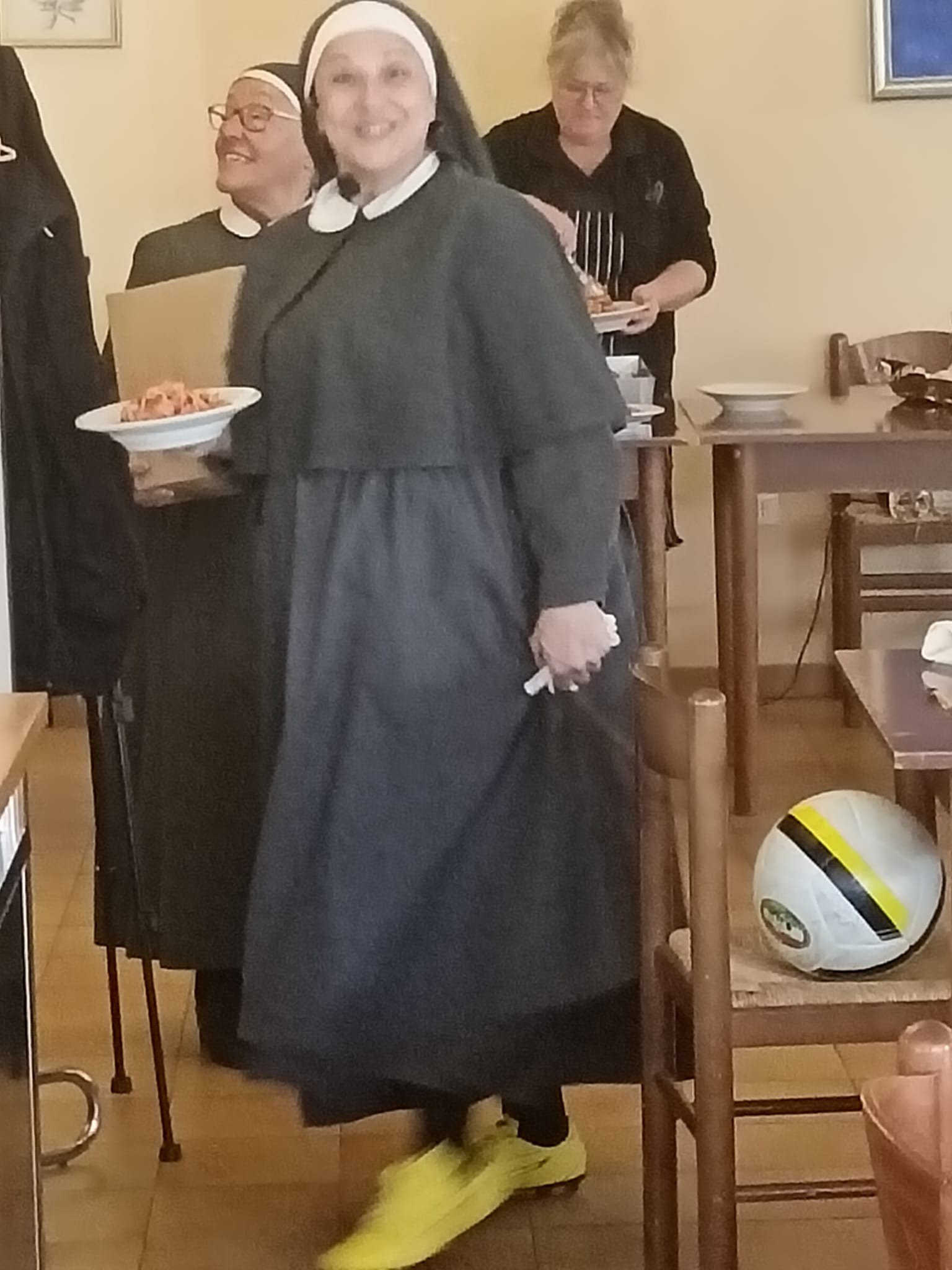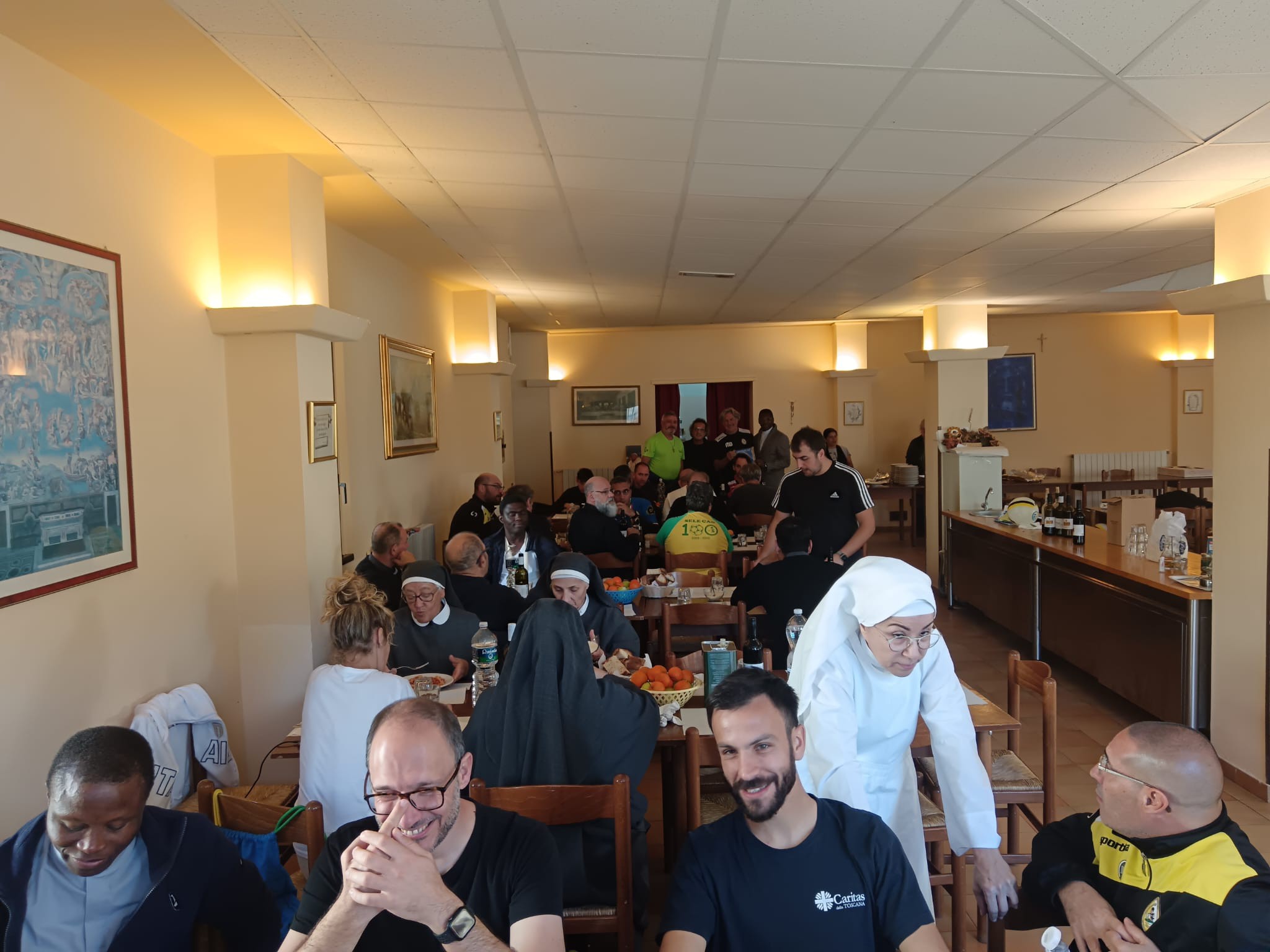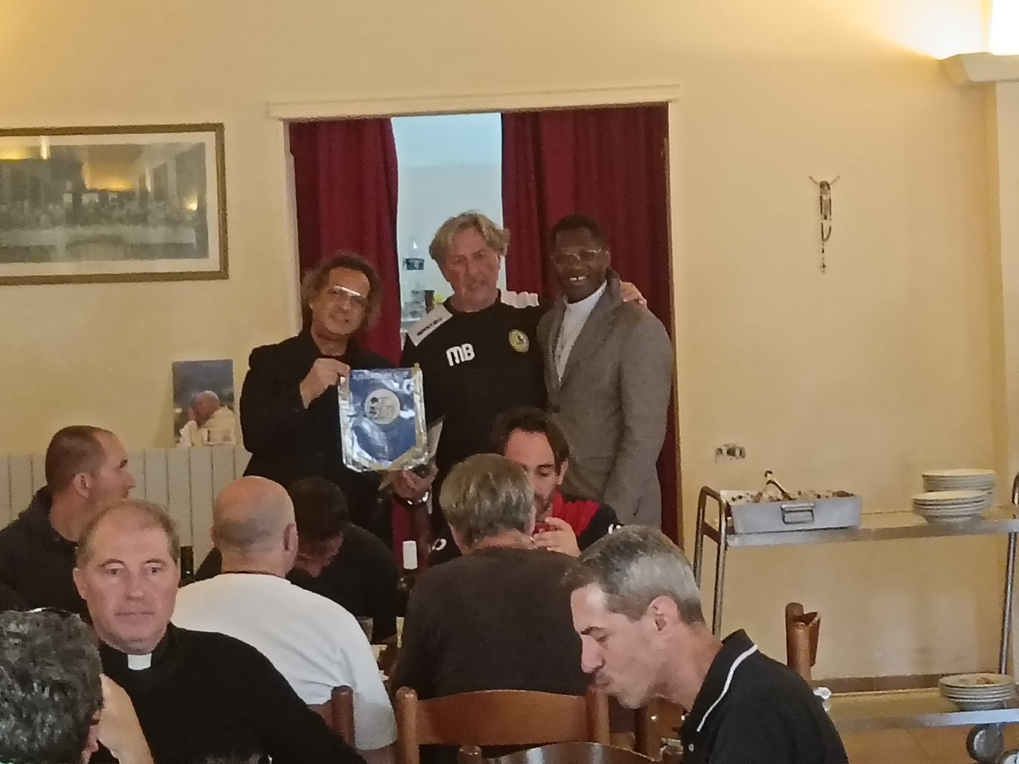 06.11.2025 – BASSANO ROMANO (VITERBO) – “Oggi in visita al Monastero di San Vincenzo Martire a Bassano Romano, provincia di Viterbo. Ho salutato la Nazionale di calcio Parroci Italiani alla presenza del mister e del presidente Buccianti Moreno laico. Mi è stato consegnato il gagliardetto ufficiale da portare alla Sede Nazionale e del partito a Roma. Grazie sempre a Mons. Priore GOMA Douverly della S.S.”.