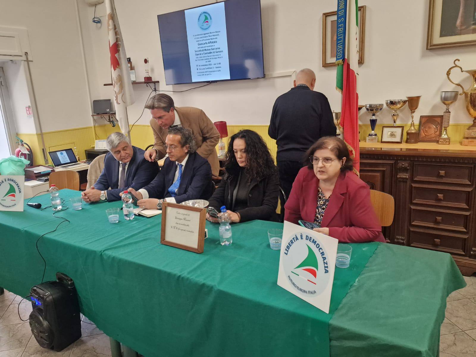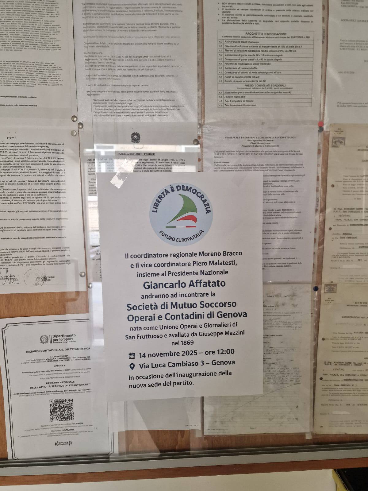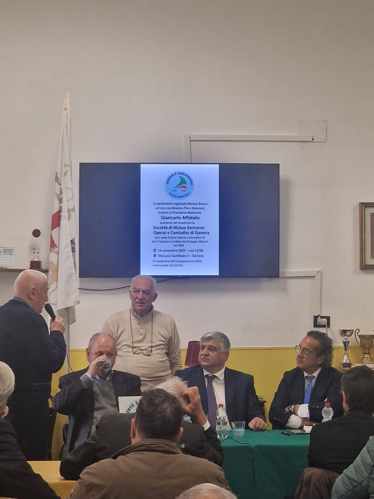 14.11.2025 – GENOVA – Oggi il Coordinatore Nazionale è Presidente di Libertà è Democrazia Giancarlo Affatato ha fatto tappa a Genova e ha iniziato la sua visita alle ore 11 per l’inaugurazione della sede in Via Libertà 90.. Presente oltre al Coordinatore Regionale Liguria Moreno Bracci, il Segretario Organizzativo Liguria Piero Malatesti e tutti i Coordinatori provinciali e cittadini. Con lui anche la Responsabile nazionale Area Donne di LeD, Cheti Cafissi. A
